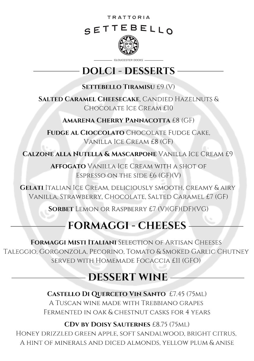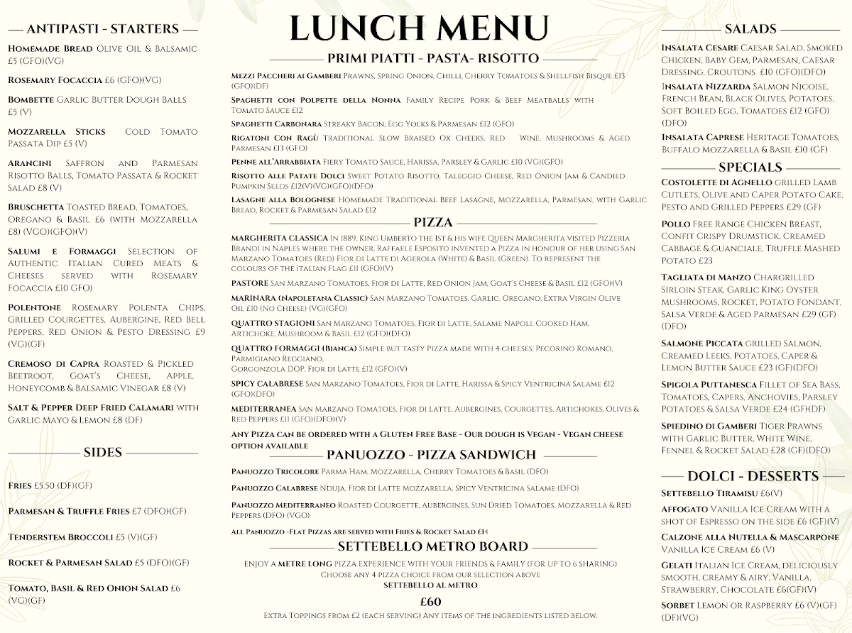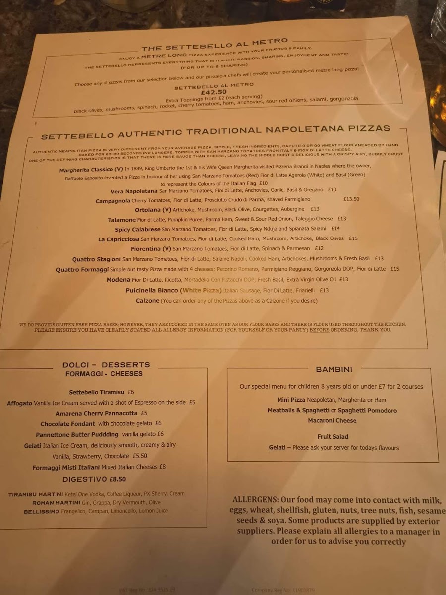 Trattoria Settebello, nestled in the scenic Docks of Gloucester, offers a delightful dive into authentic Italian cuisine, blending traditional recipes with a modern twist. The menu provides a broad selection of Italian classics, expertly crafted to meet a variety of tastes. The restaurant's ambiance, with its stylish yet cozy vibe, complements the food, creating a perfect setting for a relaxed dining experience.